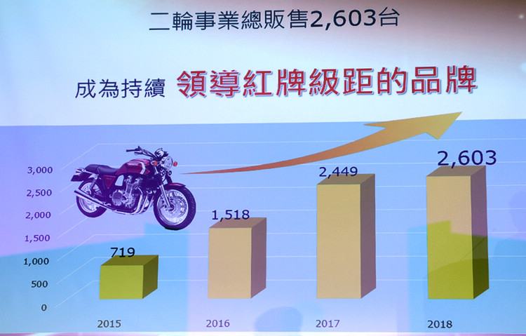 ![]() ▲Honda Taiwan宣示將聯合獨有的四輪、二輪、動力產品等三位一體的獨特事業經營型態,提供消費者更多元價值的商品及服務,將以「全面質進化 優化生活體驗」為事業發展主軸,提供消費者更好的生活體驗及生活便利性。Honda Taiwan預告2019年開始啟動5年約40億屏東工廠的生產設備及新機種導入等相關投資計劃。在二輪事業則會透過X-ADV及CB1100等主力車款,並於四月導入CB650R、CBR650R、CBR500R、CBR300R、Monkey125等新車款。 ![]() ▲Honda Taiwan在2018年總販售台數達2,603台,其中X-ADV成為紅牌進口單一機種銷售冠軍。