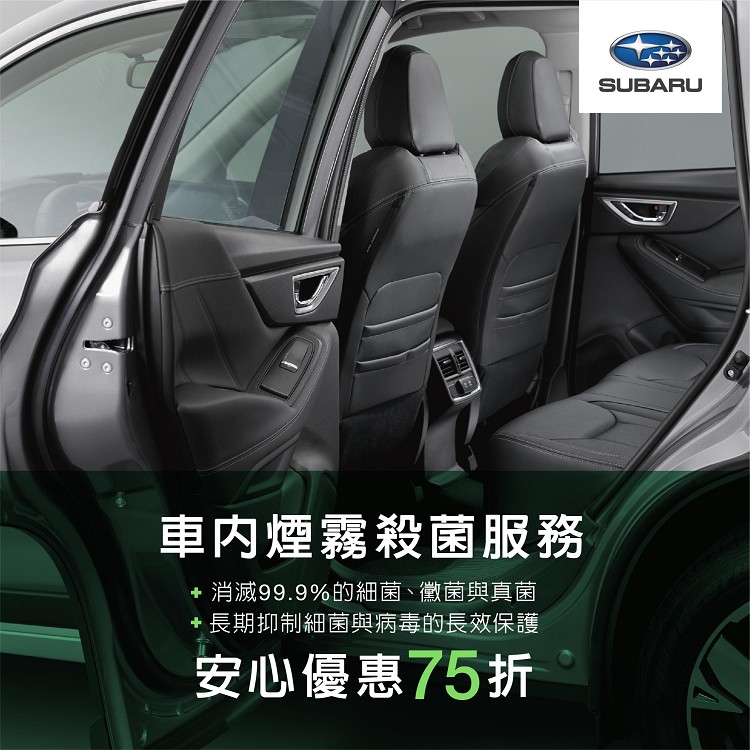 ![]() SUBARU所推出的臭氧空氣清淨機,可從空調源頭阻絕汙染及破壞細菌分子蛋白,不僅可維持車內清新的空氣循環,進而避免細菌滋生、去除車內異味;而車內煙霧殺菌服務,可消滅99.9%的細菌、黴菌與真菌,提供抑制細菌與病毒的長效保護。而為回饋所有車主,自即日起至全台各地二級防疫解除期間,SUBARU將持續提供75折的安心優惠價,與所有車主共同防疫。