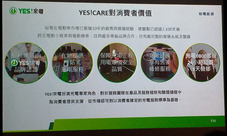 裕電能源 總經理高秀枝表示,裕電能源善用車廠背景,以「最懂電動車車主的營運商」自許,率先提出《YES!CARE》全心服務計劃,透過品牌完整的教育訓練與品質認證,確認合作夥伴施工標準與合理的施工費用,並要求通過認證的在地夥伴針對客戶的需求要做到24小時回覆、3個工作天檢修的服務準則。裕電能源攜手北中南第一批經銷商成為第一個充電營運商中關注電動車車主和場域業者售後服務需求的業者。