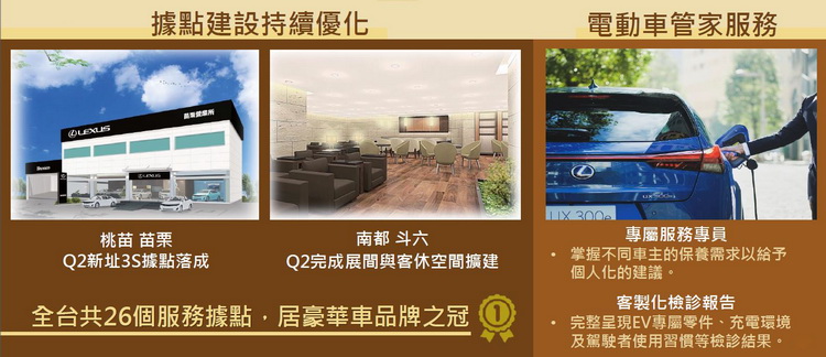 而在經銷維修據點建設上今年也將持續優化,特別是第二季苗栗3S據點新址落成與斗六據點完成展間與客休空間擴建,提供車主更優質的服務體驗。