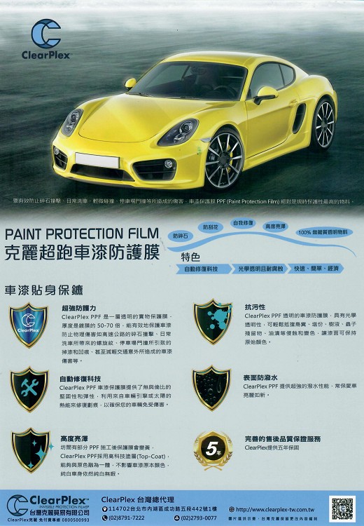 源自美國,從賽道起家的ClearPlex,其母公司百年來一直以來秉持著超跑工匠以人為本的精神,打造各式頂級的膜料,不僅在航太工業中占有一席之地,所研發生產的車用膜料更提供車輛使用者完整的駕駛安全性及行車舒適度。