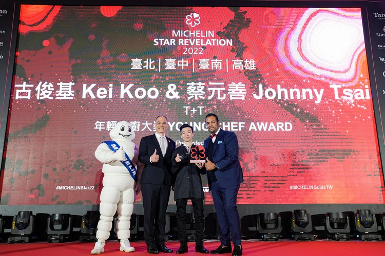 米其林指南年輕主廚大獎表彰在米其林入選餐廳中,擁有卓越天分與潛力的年輕主廚。今年該獎項頒發給臺北一星餐廳 T+T 主廚古俊基與蔡元善。蔡元善是餐飲學校畢業、古俊基因對餐飲的熱愛而投入料理,兩位主廚均有著堅實的料理背景與經歷,在 T+T,他們發揮創意,將亞洲風味元素融入料理中,展現亞洲的飲食文化與風貌。