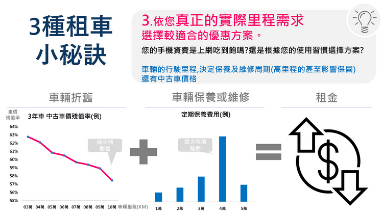 歐力士租車在企業長租及個人長租的租賃方案皆能滿足各族群的用車需求,以企業長租為例,負責的租賃顧問會提供最適切的企業節稅方案、全方位保險規劃及車隊管理系統,依公司需求量身規劃最合適的租賃方式,任何品牌任何車款皆可承租,彈性靈活、申辦流程簡易,無論是商務代步或公務用車,都是企業最明智的選擇。