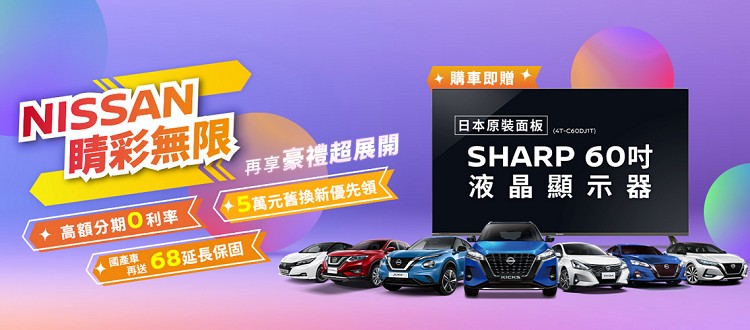 裕隆日產汽車因受原物料、運輸成本大幅增加與匯率影響等因素,導致造車成本提高,面臨價格調漲的壓力,故自2023年1月1日起,NISSAN將正式調整國產車KICKS、ALL NEW SENTRA與進口車ALTIMA 2023年式建議售價。惟裕隆日產為回饋市場長期支持並追求顧客滿意,讓所有愛護NISSAN的消費者於歲末年終仍能輕鬆入主NISSAN優質車款,自2022年12月1日起至12月30日止,好評延長「NISSAN睛彩無限」全車系購車優惠,凡於活動期間下訂NISSAN進口、國產全車系並完成領牌程序者,即可享有「NISSAN睛彩無限」購車優惠,包含日本原裝面板SHARP 60吋液晶顯示器(型號4T-C60DJ1T,建議售價27,900元)乙台、高額分期零利率及燃油車款舊換新5萬元優先領等超值豪禮,讓所有NISSAN準車主能夠「開好車,過好年」。