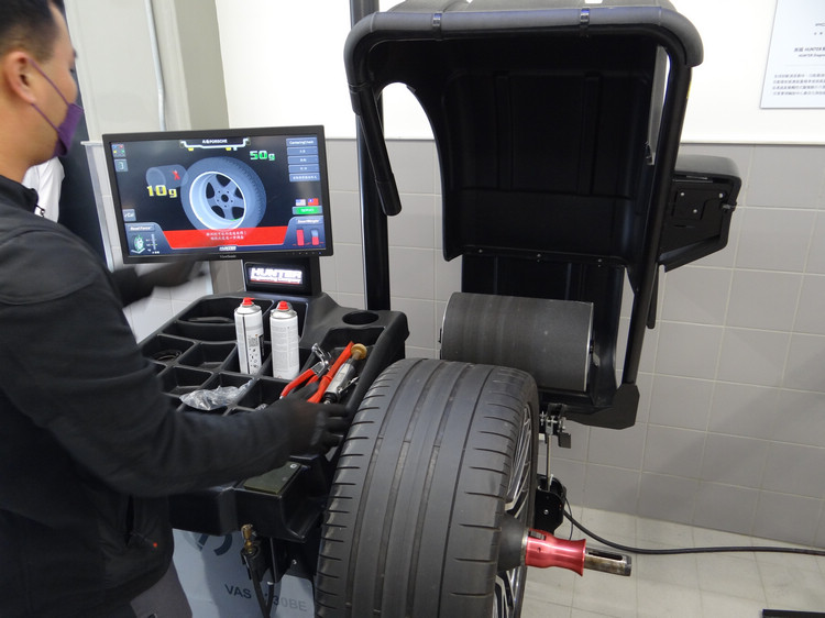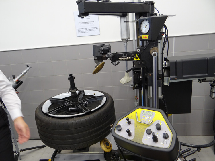 義大利GORGHI 無接觸式免撬棒拆胎機:此為德國保時捷原廠指定使用拆胎機種,有別於傳統機型拆裝輪胎時,所可能造成的胎皮撕裂及傷框的潛在疑慮,此機型採用無接觸鋁圈拆桿頭,電腦精準輸入直徑尺寸,並能處理中心固定式鋁鎂合金輪圈,面對大尺寸,扁平比低或較硬質的輪胎,皆游刃有餘。