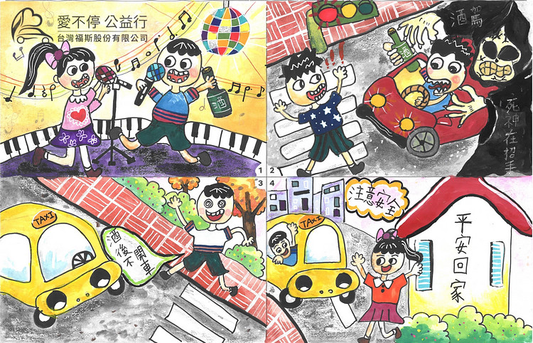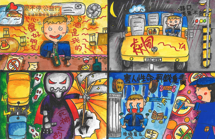 本屆繪畫比賽採用四格漫畫的全新賽制,不但能讓孩子們發揮有關道路安全的創意與想法,更能以輕鬆有趣的方式,傳遞正確的交通觀念。由插畫家、美術老師和畫家所組成的專業評審團說明:「許多作品都展現了獨一無二的創意與想像力,透過孩子們的作品,我們也看見道路安全的概念融入於其中。」