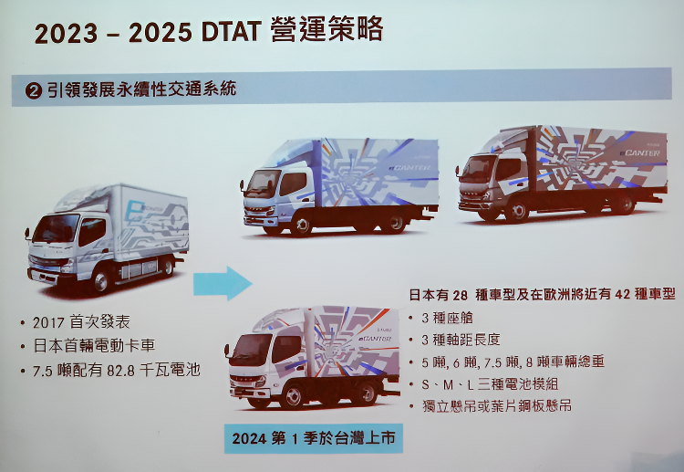 台灣戴姆勒亞洲商車(DTAT)執行長朴正祐公佈2022年銷售表現,以及未來三年的銷售目標與營運計畫;去年集團於全球無論產品銷售、營收及稅前淨利皆大有斬獲,然而台灣3.5噸以上商車及巴士,受到政策及大環境等因素影響,則有20%的下滑。DTAT承諾未來將持續提供顧客更多優質產品及服務,消弭交車延宕等障礙,並將於2024年第一季,引進FUSO eCanter純電貨卡進入台灣。