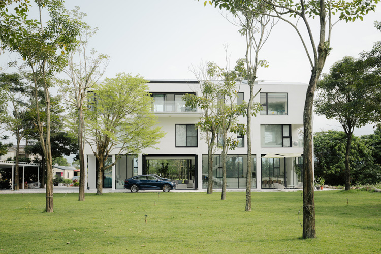 HA House 生活別墅系列作品中, 「春」大片透明落地窗,將戶外一片嫩綠框成一幅畫;「夏」遠眺龜山島的寬敞陽台,收進所有歡樂夏天的氣息;「秋」走出家門便能擁抱整排落羽松前的大片天然湧泉,隨時都能和家人一起在清澈池水暢玩SUP,讓人不禁期待接下來的「冬」、「山」主題會有哪些有趣的設計。
