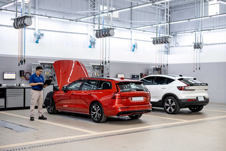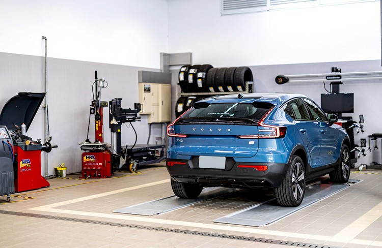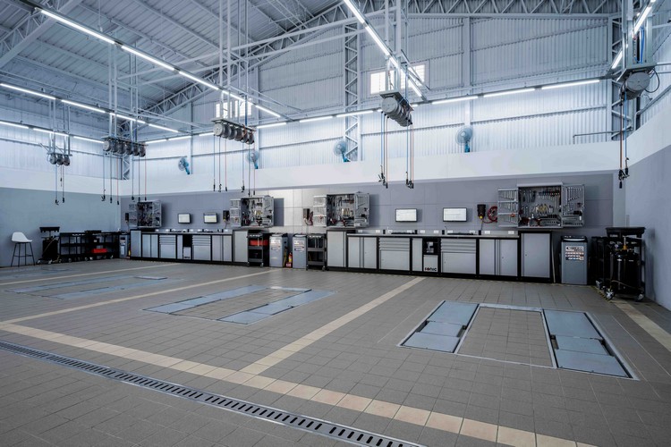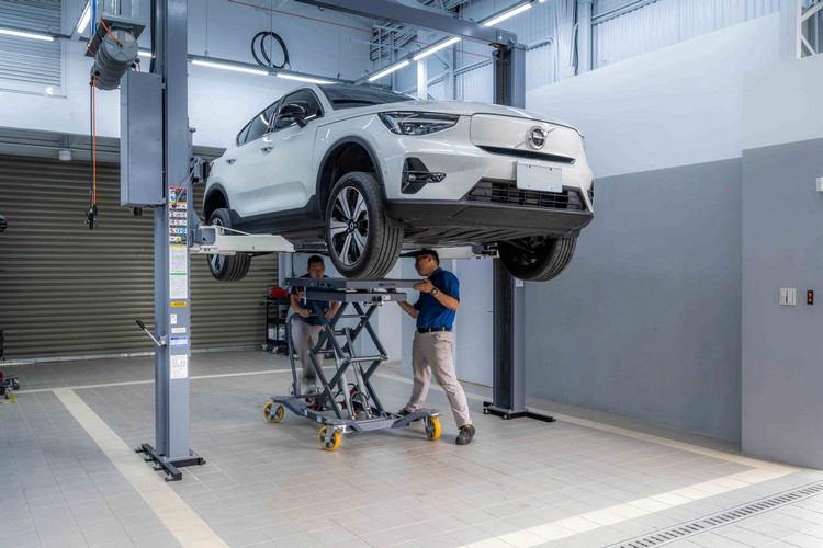 服務廠入口設於一樓側邊,愛車能輕易從交通要道上轉進廠區,接待區旁另設有專屬獨立交車空間,提供車主舒適具隱私的空間一步步瞭解北歐科技、貼心設計與全方位安全的使用方式。後方服務廠設有四個工位、一座四輪定位、輪胎工作區及電動車專屬雙柱頂高機工作區,採用 VOLVO 原廠規範的 SONIC MSS 系統工具組、整合油電水五合一專用作業捲盤與廢氣抽除系統等,帶給車主安全有效率的保修服務。