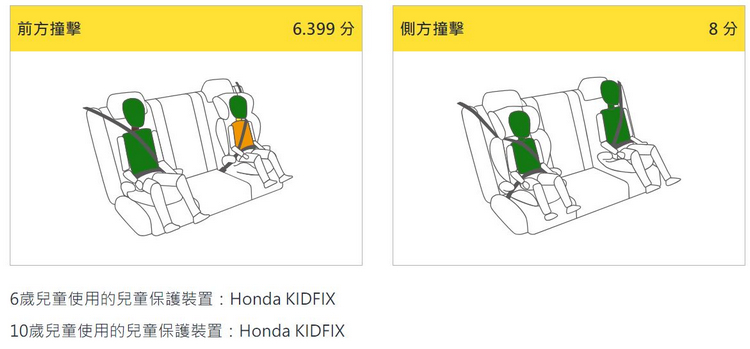 CR-V在成人保護方面,主要是對於後座乘客的頭頸保護性能較差以及胸部因遭受較大的安全帶張力致保護性能評為「差」,其他項目表現多為優良。