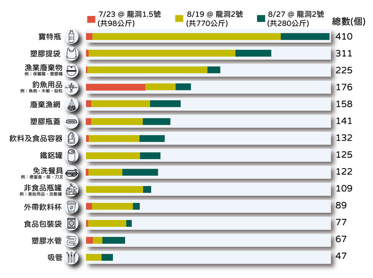 ![]() ▲台灣保時捷今年持續支持荒野保護協會的海洋倡議行動,同時參與潛水淨海和岸上淨灘活動,為社會盡責。今年行動的一大亮點是同時舉行潛水淨海和岸上淨灘活動。台灣保時捷志工積極參與的兩次淨海活動在內,荒野保護協會及台灣保時捷一共清除了1.15噸的垃圾。 ![]() ▲擔任潛水志工的成員在短短時間內從海裡清理出了漁業水管、廢棄漁網等許多大型廢棄物及各種塑膠製品。![]() ▲擔任潛水志工的成員在短短時間內從海裡清理出了漁業水管、廢棄漁網等許多大型廢棄物及各種塑膠製品。![]() ▲2023年荒野保護協會淨海及淨灘海洋廢棄物統計,塑膠製品及漁業廢棄物佔比最高。