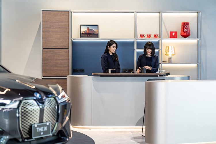 讓功能性區域成為空間美感延伸![]() 不僅運用嶄新的陳設手法,BMW Retail.Next 也重視區域細節的呈現,好比過往展間接待櫃檯大多安排在入口處迎賓,Retail.Next 則嘗試把接待櫃檯不違和的安排於空間之中,簡約的外型就像時髦咖啡廳的 Standing Bar,無形間拉近展間內人們的距離,也同時保有收納機能。至於出納櫃檯也別具巧思,BMW 新世代展間以最不影響室內風格整體性為原則,將出納櫃檯移至空間最深處的同時,把最「現實」的交易櫃檯化為展間之旅的最終站,極大化的延續消費者在賞車過程的愉悅感受。