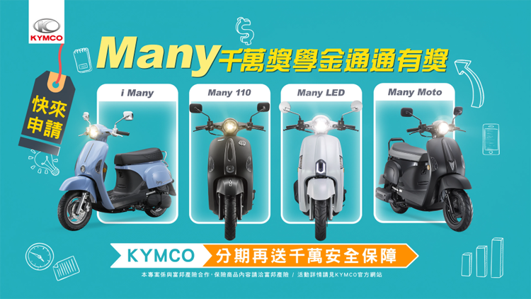 球專業機車品牌KYMCO為搶攻年輕族群,把握大學寒假開學季商機,針對全台百萬位大學生族群,以最受年輕人喜愛的「Many」全車系送上「千萬獎學金」,減輕學生負擔!長年熱銷超過60萬台的「Many」一直以來都深受年輕族群所喜愛,在追求展現自我的大學生族群中,時尚多變的Many車系更是最適合表現各種個性首選車款!即日起,只要憑學生證購入Many Moto、Many LED 125、 iMany、Many 110車款,KYMCO便送上2,000元購車獎學金 (現金購車),總額1千萬的獎學金送完為止;分期購車再享限時升級「千萬菁英駕御」保障,優惠真的太「Many」,同學們千萬不要錯過!