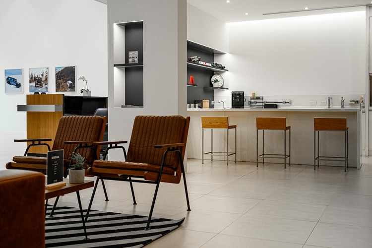 ![]() ▲INEOS Grenadier 首度插旗中台灣市場,完整串聯北、中區域品牌服務網路。INEOS Grenadier 台中展示暨服務中心佔地百坪,大面自然採光透過四米落地窗援引入室,結合挑高設計,以適度留白建構通透敞亮的賞車環境。選用純粹色調牆面與溫潤木飾,搭以復古皮革、金屬鐵件揉合堆疊,營造沉穩質感的貴賓休憩空間,提供親切細膩的專屬服務體驗。 ![]() ▲百坪展示空間、四米落地窗建構通透敞亮的賞車環境,打造親切細膩的專屬服務體驗。