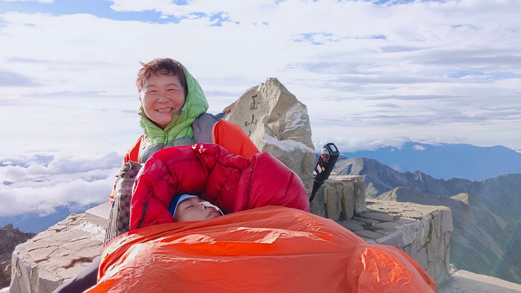 ▲小比媽媽不畏挑戰,陪伴小比踏上台灣最高峰。