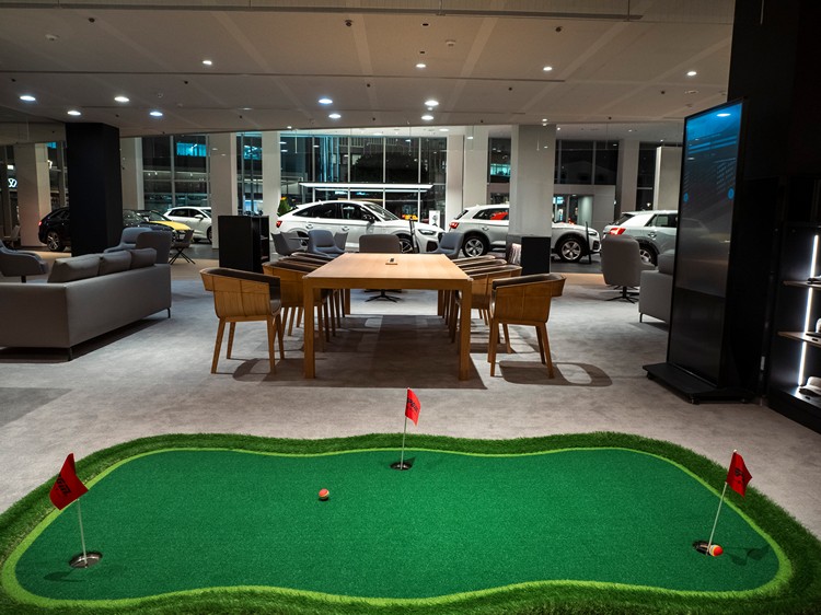 此次 Audi 新莊全面升級,不僅提升硬體設施,更結合創新與永續理念,為車主帶來全新的感受。全新舒適空間升級休憩區硬體設備,並新增高爾夫體驗區域,讓車主與消費者在參觀的同時仍享有運動娛樂。