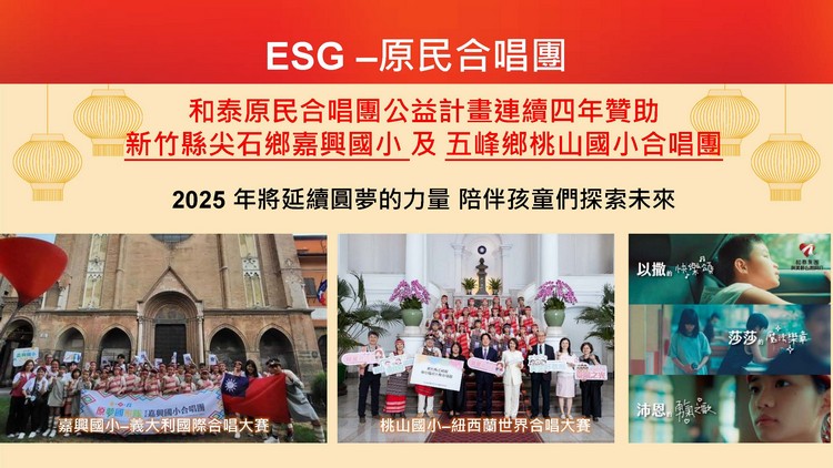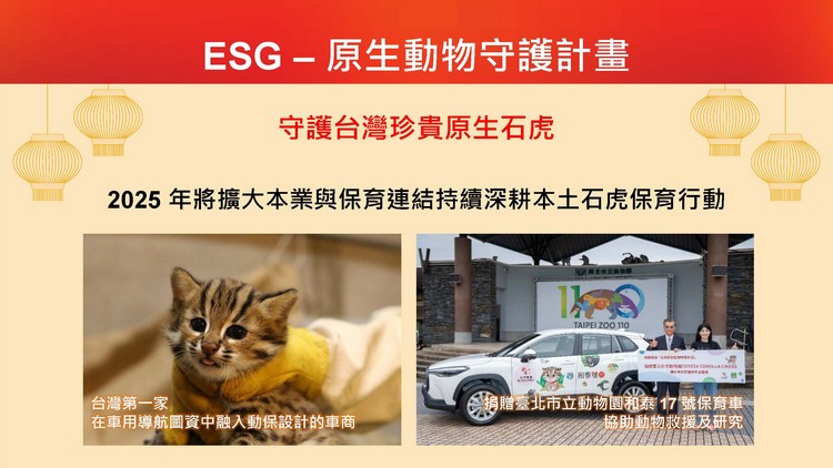 「量產幸福 移動公益」已完成全台六都公益接駁服務布局,新年度將與多家NGO及NPO公益組織合作,累積捐贈近千萬車資,並計畫導入iRent/附駕包車,拓展全新型態公益合作模式。「原民合唱團」公益贊助新竹縣嘉興與桃山原住民國小合唱團,2024年透過集團力量,協助原民孩童前進紐西蘭與義大利,參賽世界合唱大賽,獲得《金質獎》等多項大獎,未來也將整合集團資源,延續圓夢的力量。「原生動物守護」將在《動物出沒熱點》車用導航圖資基礎上發展石虎獨立顯示功能,強化台灣動物防護意識。