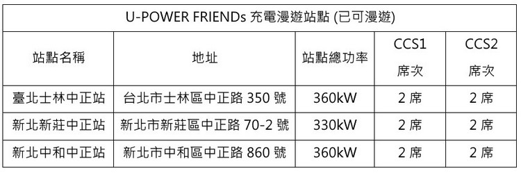 註2:因站點設備功能受限,U-POWER充電卡恕無法使用於U-POWER FRIENDs充電漫遊夥伴站點。