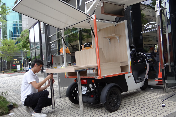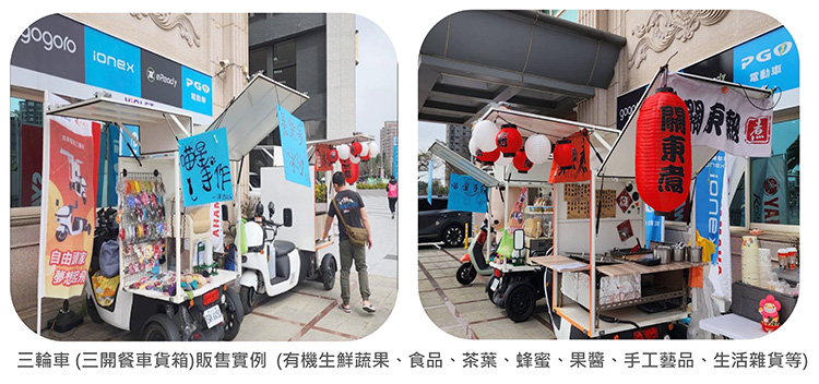 記者會現場同時展示內建自動炒菜機,和配有義式冰淇淋機的兩款電動三輪車。業者表示,只要月付幾千元,就能擁有一台車,以及一間店;免店租、免高額裝潢費、自由移動、隨處開張的優勢,是真正實現低門檻、高彈性的創業模式。