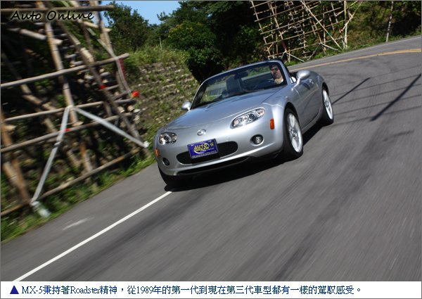 不過在台灣還是有一票始終車迷特別喜愛Roadster精神,而何謂Roadster精神呢?想要成為Roadster必須要符合以下幾點:輕巧的車身、靈活的操控性、直接的路面回饋等等,MX-5的設計理念也就是以Roadster為出發點,要打造一台具有豐富駕駛樂趣的敞篷小跑車。放眼車壇中可以媲美Roadster精神的車款真的不多,硬要說的話BMW Z4、M-Benz SLK、Lotus Elise、Honda S2000都稍稍可以說有一點點Roadster精神。
