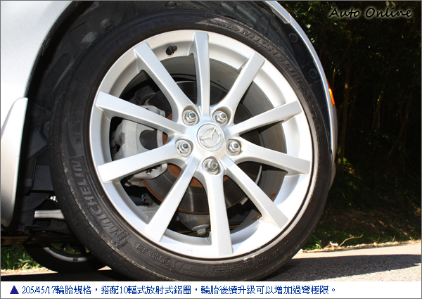 ▲2.0升四缸自然進氣引擎,最大馬力170hp跟最大扭力19.2,所使用的是Mazda新款MZR引擎,有進排氣可變系統。