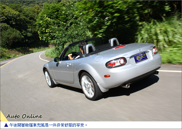 在台灣為何會有一票始終車迷喜歡Roadster精神的MX-5,只要你開過就能體會他們為何如此著迷。車線媒體試車必經之路-五指山,山路蜿蜒的程度考可以很快體驗出車輛的能耐。MX-5標榜它輕巧的車身、靈活的操控性、直接的路面回饋,充滿駕駛樂趣的一台雙門廠篷小跑車,當然要在短時間內徹底激發出它的淺力。一台2.0升自然進氣引擎有170hp最大馬力,說實在試慣了動則兩三百匹馬力的性能車,對這樣的動力數據讓筆者不抱太大興趣,但在筆者坐上駕駛座排入一檔之後,對之前藐視的態度深感抱歉。