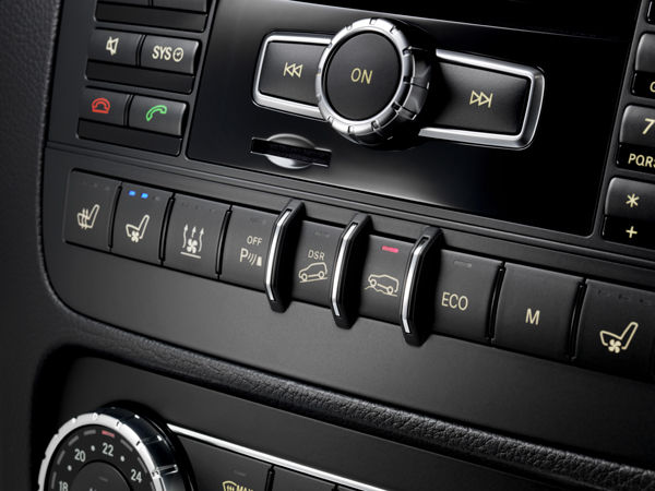 內裝改變幅度更為明顯,如同M-Class把排檔桿上移到方向盤後,騰出的置物空間做了一個拉門,便利性與質感俱佳。扶手前方仍有控制多功能顯示幕的旋鈕,以及兩個大型置杯孔。