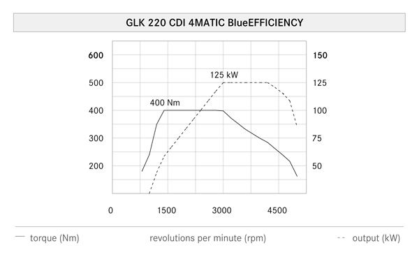 ▲GLK 220 CDI的引擎表現,從1400rpm到3000rpm都有400Nm的大扭力(40.8kgm),相當夠用!
