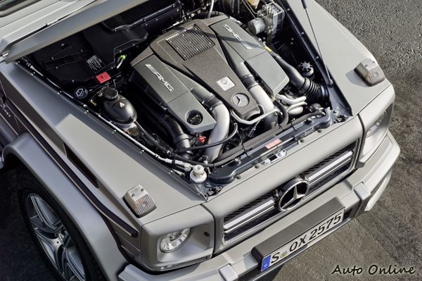 G-Class的引擎系列從G350BlueTEC起跳,2987cc的V6柴油引擎也用於M-Class、GLK,211hp/3400rpm馬力與540Nm/1600-2400rpm扭力已經提供很充沛的動力,價格也親民許多。G500則使用5.5升V8汽油引擎,發揮很保守的387hp馬力與優異的530Nm扭力,而事實上這個引擎的調校空間非常大,隨便調整一下弄到500hp輕而易舉。