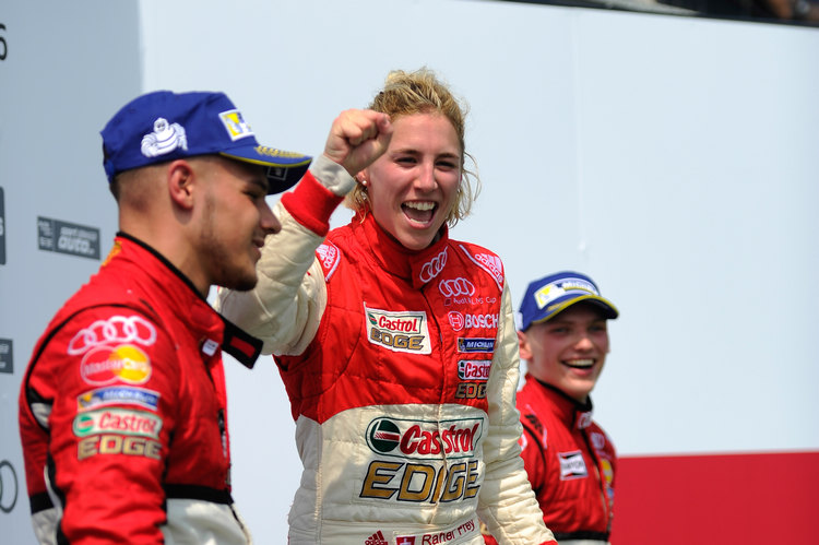 第一回合 - 瑞士女將輕鬆獨走![]() ▲場上的唯一女性車手Rahel Frey,以絕對優勢拿下第一回合的勝利。一開賽火藥味就異常濃厚!原本從第二起跑位置的Rahel Frey在沒有增重的優勢下,起跑後的加速相當快,把握機會超越所有對手後,成功甩開後面追擊的賽車多達13秒,輕鬆奪下台灣站第一回合賽事冠軍,不過這也意謂她下一回合車輛必須增重50公斤。 ![]() ▲取得桿位的熊龍以第四名完賽,也展現了旺盛的戰鬥意志。![]() ▲Jan Kisiel是去年AUDI Sport TT統規賽冠軍,在R8 LMS Cup表現也相當強悍。![]() ▲首度挑戰台灣賽道就摘下冠軍,瑞士女將Rahel Frey在頒獎台上險得相當興奮。