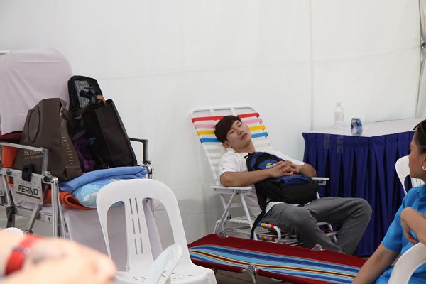![]() ▲帶著國旗出征的台灣隊伍,本次還特別在衣服背後貼上小國旗,是所有隊伍中辨識度最高的參賽者。![]() ▲ 豔陽天下的熱帶氣候,台灣選手比賽沒多久開始陸續出現體力不濟的現象。![]() ▲通過初賽來到新加坡參加總決賽的台灣選手,可惜沒能撐過第一個小時,就因身體不適被緊急送往救護站。![]() ▲拿到去年總冠軍的新加坡藉Chong Kait Chi創下75小時36分的紀錄,贏得一部Impreza WRX,在比賽前特別來到台灣隊伍幫忙打氣,同時傳授技巧:必須不斷聊天,才能度過漫漫長夜。