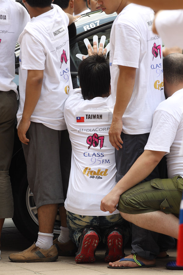 ![]() ▲現場共有10台車,每台車有40位選手,其中台灣和菲律賓被分配到同一台車,其餘一半則是新加坡選手。台灣參賽者吳宗原似乎抽到好位置,引擎蓋夠低,也方便蹲下活動筋骨,有希望創下隊中最佳成績,奪下個人獎1000元新加坡幣。比賽第一次休息時段為10/26傍晚七點,每位選手可獲得5分鐘休息時間,包括吃、喝、按摩、上洗手間等都必須把握這個時段完成,不過服裝不得改變。比賽現場有多名監察員不斷監控,發現違規還會給予黃帶警告,得到三次者就出局,重大違規者也會被判失格,選手間還會互相檢舉,相當嚴格。