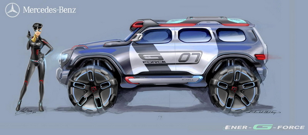 ![]() 其實這是賓士為了參加今年L.A設計挑戰賽所提出的企畫案。這個備受美國汽車設計界重視的設計挑戰賽視評審團為包括美國舊金山藝術大學工業設計學院以及多家知名設計學院所組成,包括賓士、本田以及想在美國立足的車廠幾乎都不會缺席這場設計比賽。也由於評審中有警方代表,因此今年的主題便設定在新世代環保對環境友善的警車。 M-Benz解釋這台名為Ener-G-Force的概念車除了保留位於車頂的LED藍白警示燈外,象徵G-Class精神的大橫閘水箱護罩以及廠徽也會保留。你會發現Ener-G-Force的窗戶變小,設計團隊表示這理念來自於蟲繭,藉由這樣的設計讓警員能夠有夠多的安全感執行勤務,而20吋輪胎的設計則是為了在任何地形都能穿越自如。