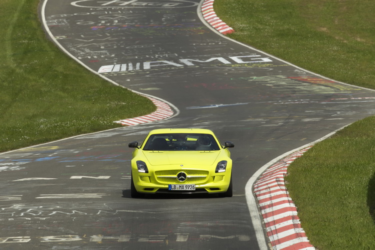 德國M-BENZ汽車準備在今年少量販售的電動超級跑車SLS AMG Coupe Electric drive,最近傳出在德國紐柏林賽道上創下市售電動車最快單圈時間的記錄。