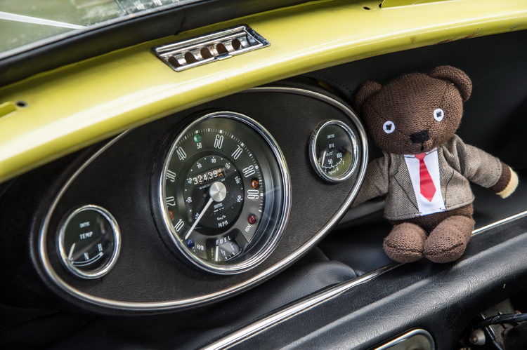 ![]() 這部1974年生產的老MINI在1990年代的豆豆先生影集中扮演著相當重要的角色,陪著豆豆先生一同經歷許多漫畫般的瘋狂冒險,儘管曾多次面臨危機,最後終能化險為夷。這部把從死裡逃生視作家常便飯的老MINI搭載著1.0升排氣量直列四缸引擎,可輸出34bhp最大馬力,在影集中它的方向盤還是可分離式的,免得豆豆先生的四輪伙伴被人幹走。