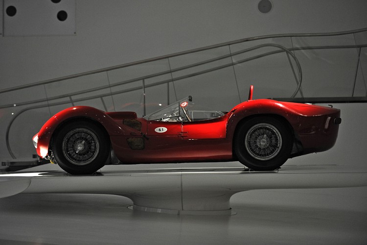 Stirling Moss 也出席了此次開幕儀式,他曾駕駛著這輛別具一格的跑車捧得無數獎盃和榮耀,例如1956年的義大利和摩納哥大獎賽。當然,不得不提的還有Moss 曾駕駛的另一款車型Tipo 60 "Birdcage"。這款著名的雙座運動跑車配備前置引擎,這一具有獨創性的義大利設計能夠與跑車的旋轉式底盤完美搭配,在生產過程中將數十個纖細的金屬管焊接在一起,以確保底盤堅硬而不失輕盈。許多私人賽車團隊都曾在比賽中使用過這款跑車,它從1959年起便為Maserati 贏得了無數勝利,讓公司獲得了名聲和威望。