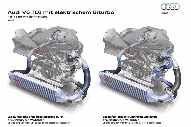 電子渦輪的可行性備受存疑,其最大原因單靠電子渦輪是不足以提供引擎進氣量。而AUDI為了克服此問題,使用傳統渦輪與電子渦輪搭配使用,並已搭載在概念車RS5 TDI上,成效目前還在測試當中,而M-Benz目前正在考慮是否跟進,如果跟進將會率先搭載在AMG車款上。
