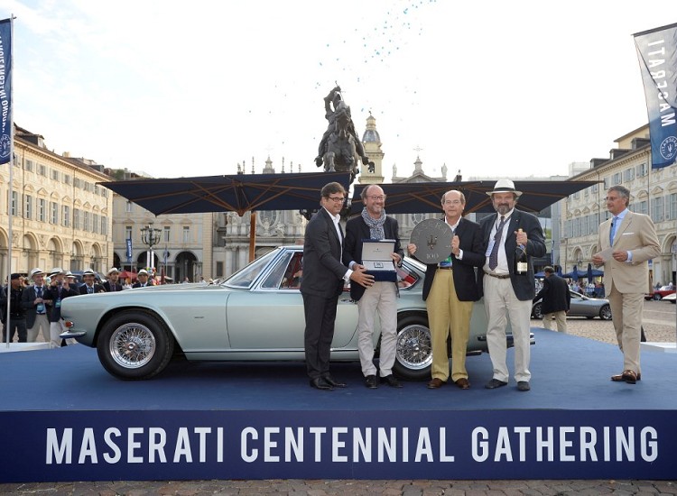 當日下午在都靈市中心腹地聖卡羅廣場(Piazza San Carlo)舉行的古董車展成為本次慶典的尾聲。飛雅特-克萊斯勒集團和Maserati 公司設計中心負責人Lorenzo Ramaciotti 先生擔任評審之一。本次車展的最高獎項頒給了Maserati Mexico 4200 Prototype Frua 車型,而Umberto Panini 私人珍藏的Maserati A6 GCS/53榮獲特別獎,並且在常規比賽中取得第三名的佳績。Umberto Panini 於上世紀九十年代收藏了20多輛Maserati 經典車型,這輛車便是其中之一。 這場全球同慶的Maserati 百年巡游盛典在頒獎典禮中完美落幕。歷時三天的活動,匯集了500多位Maserati 收藏家及車主和超過200台Maserati 車輛,行程涵蓋Maserati 1914年的發源地波隆納,1939年搬遷至今的總部所在地摩德納,以及品牌第二家新工廠所在的都靈,Maserati 的百年風雅和激情隨著巡游車隊一起點燃了整個義大利,並將蔓延至世界各地。