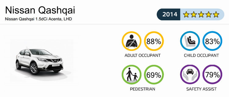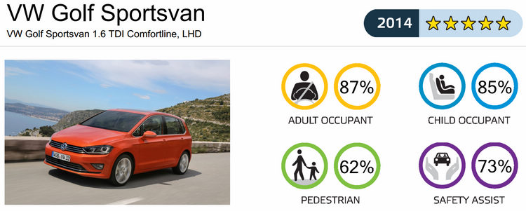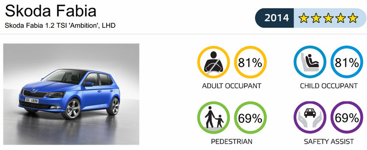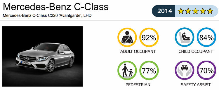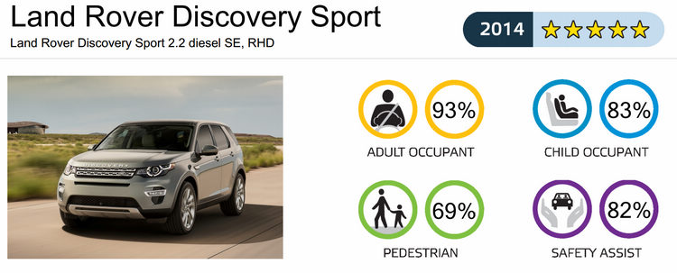Euro NCAP公佈去年(2014)各級距得分最高的車款分別為C-Class、Discovery Sport、Golf Sportsvan、Qashqai、NX與Fabia,其中Discovery Sport更是去年所有受測車當中的總冠軍。由於去年起加重了「安全輔助」項目中的AEB(自動緊急煞車)等主動輔助科技的評分佔比,連帶影響了一些車款的總分,譬如去年Supermini級距總共有14款車受測,但只有SKODA Fabia一款車獲得五星認證。