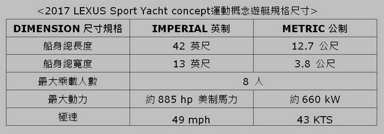 ![]() 這艘LEXUS Sport Yacht Concept運動概念遊艇,於今年3/8-11在日本橫濱舉辦中的日本國際遊艇展 (Japan International Boat Show) 展出,並榮獲年度遊艇(Boat of the Year)特別獎。