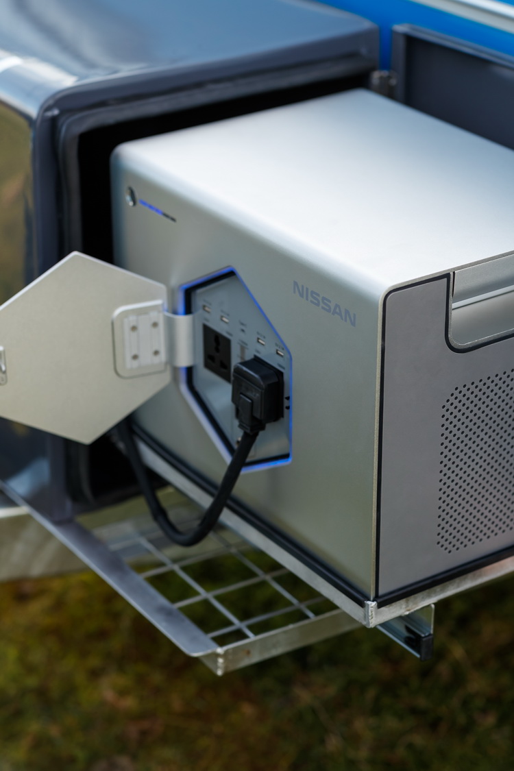 Energy ROAM也可以從露營車中拆下來,透過插上標準的家庭用230V電源插座或是太陽能充電板的充電插座配件來充電。除了「被充」之外該系統本身也有230V電源插座與USB提供電力給手機或其他露營用周邊電器來充電使用。NISSAN x OPUS概念車上就有微波爐、瓦斯爐與電冰箱等設備。至於車廂內則有足以提供最多六人就寢過夜的空間。