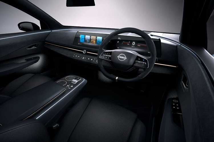 Nissan對於螢幕的配置有著自己一套想法,他們認為橫向的放置在最符合人體工學以及視覺判讀,正如大家在東京車展上看到Nissan的概念車,屏幕都維持橫置樣貌。Nissan表示橫置的螢幕配置可以與儀表板連成一線,透過波浪狀的特殊螢幕帶來車室內水平視覺感。他們也覺得橫式水平放置讓駕駛者可吸收到更多訊息,視線不需要下一就能讀取到屏幕上所有資訊,使用上水平配置更加安全。