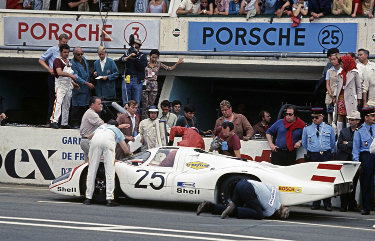 ![]() ▲Kurt Ahrens站在917-001車後,此為1969年打造的首部917。1940年出生於布倫瑞克(Brunswick),Kurt Ahrens的父親也是賽車手Kurt Ahrens senior。年幼的Kurt Ahrens從小鍾情於賽車運動,而後子承父業參與專業賽事,甚至曾與父親同場競技。 ![]() ▲1970年6月14日利曼24小時Vic Elford與Kurt Ahrens駕駛917 LH Coupé。917車後由左至右為Helmuth Bott、Gerhard Kuechle、Kurt Ahrens、Helmut Flegl、Vic Elford(身後為Roland Bemsel)、Werner Enz。