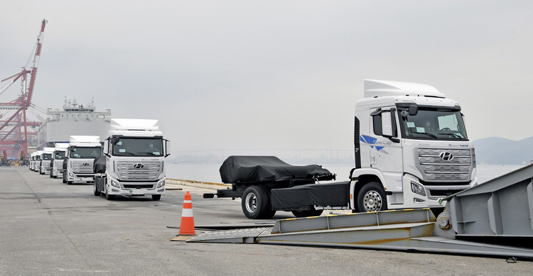 由Hyundai汽車製造的全球首款氫燃料電池量產重型卡車XCIENT Fuel Cell,第一批10輛車正由船運運送瑞士,由於歐洲對於此類電動重車的強烈需求,接下來年底前Hyundai還會出口50輛這款19噸零排放重卡,預計2025年之前,總共會有1600輛的氫燃料電池重車陸續登上歐陸。