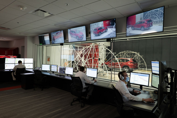 風洞實驗室內具備各式收音設備與攝影器材,可即時收集實驗中的聲學相關數據。HONDA目前正積極將產品轉型電動化,在車體設計上需要重視靜肅性表現,便可從實驗中獲得改善依據。對於沒有引擎聲與排氣聲浪的純電車來說,風切聲就成為提升靜肅性的焦點。HONDA的工程師們可以透過風洞實驗室內的音響測試系統迅速而準確地找出車子內部與外部噪音產生的位置。此外,降低空氣阻力自然也有助於提升目前電動車相當在意的續航里程表現。