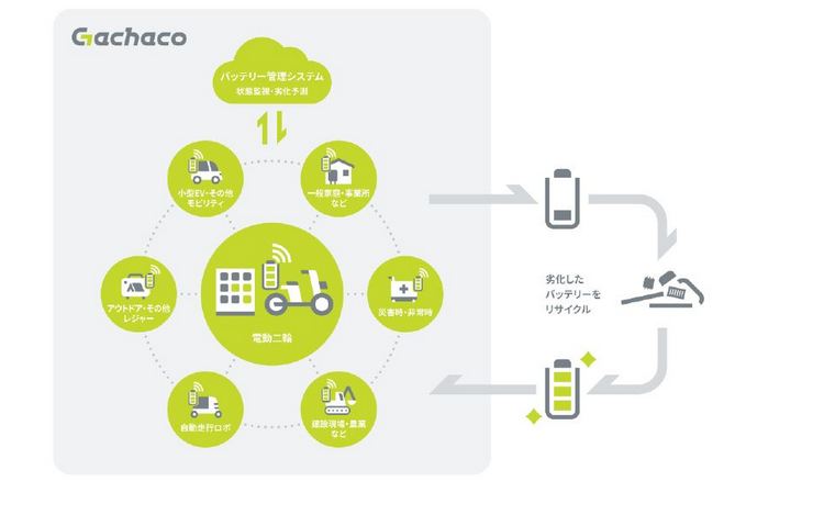 日本四大機車廠HONDA、YAMAHA、SUZUKI、KAWASAKI與ENEOS控股公司共同宣布在日本組成類似國內PBGN智慧電動機車聯盟般的換電(池)聯盟。也就是五家公司所生產的電動機車會採用相同的電池規格,基於此聯盟的成立,也在四月一號成立新公司Gachaco來負責建立各地換電服務的據點建設與營運。其出資比例為ENEOS:51%、HONDA:34%、KAWASAKI:5%、YAMAHA:5%、SUZUKI:5%。