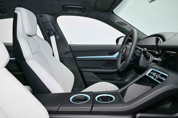 ![]() 不過雖說是專屬客製車,這輛 Taycan 的外觀卻刻意輕描淡寫,與金屬黑車身漆面形成鮮明對比的是施以邁森藍烤漆的21吋Exclusive Design輪圈。