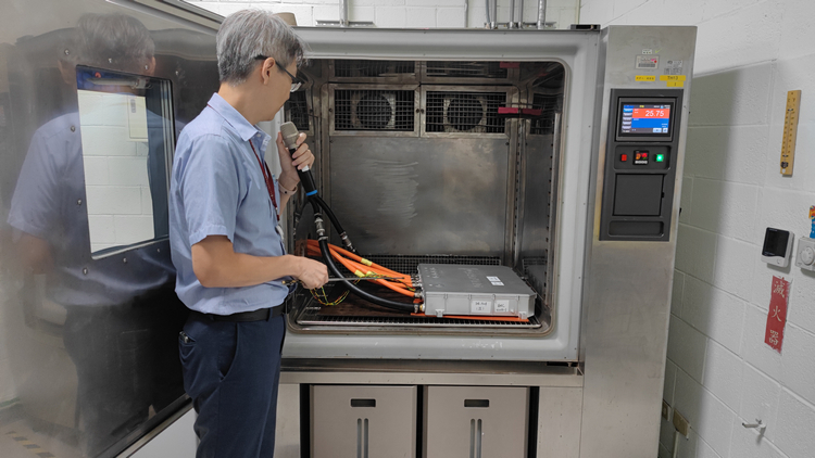 台灣零組件已是國際車廠重要的供應鏈,絕佳的優勢更表現在系統整合及智慧化,然而在車電產品趨勢為系統總成,於測試驗證的缺口為大容量設備、高壓、高電、溫度衝擊等複合環境的設備,經濟部科技專案近年已陸續建置可容納55吋大尺寸的智慧座艙、以及在複合環境下能執行多合一動力總成等大型車電產品之驗測能量,有效縮短開發時程,快速提升台灣在國際上的供應鏈位階。 ![]() ▲為了驗證動力驅控系統控制各種不同馬達時的表現,所以採用馬達模擬器來模擬各種不同類型馬達![]() ▲馬達模擬系統![]() ▲動力驅控系統![]() ▲大型溫度衝擊環境模擬系統模擬溫度變化低至攝氏零下五十度高至攝氏一百七十度的環境來驗證產品的耐候性![]() ▲高變率環境溫濕度模擬系統用來模擬劇烈的濕度與溫度變化下產品的耐用度![]() ▲此系統可在每分鐘將溫度提升攝氏40度來營造急速升溫的環境![]() ▲系統環境可在最低攝氏零下五十度至最高攝氏一百五十度間做變化