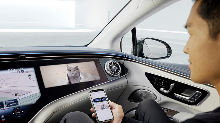 本次 OTA 更新的另一項功能聚焦於副駕駛座影音資訊螢幕,當副駕駛座乘客利用前方螢幕觀看電影或電視節目,可直接透過車內音響系統播放音效,無須再另外佩戴耳機裝置。此外,副駕駛座乘客亦可透過 Mercedes me App 選擇個人化照片,並顯示於前方螢幕上。