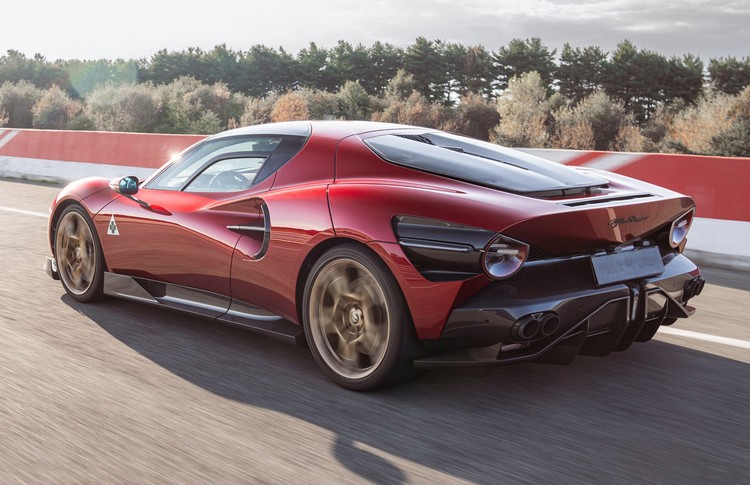 33 Stradale搭載3.0升排氣量V6雙渦輪汽油引擎搭配八速DCT雙離合器自手排變速箱,可輸出超過620hp最大馬力,採後輪驅動設定與電子式限滑差速器,極速可達333km/h,0-100km/h加速成績在3秒以內。